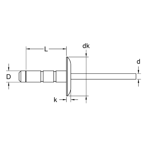 Thông số chi tiết của Đinh rút rivet đầu vòm hở vành rộng Mukti-grip: Xem